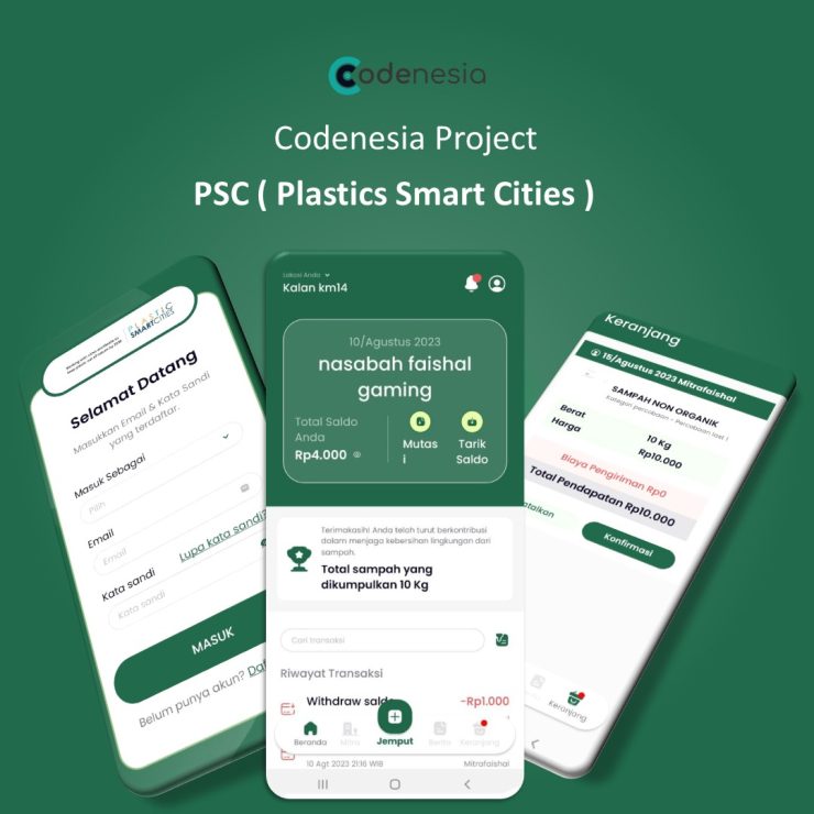 Aplikasi mobile companion untuk program Plastic Smart Cities yang memudahkan masyarakat melaporkan dan mengelola sampah plastik. Codenesia merancang aplikasi yang user-friendly dengan fitur gamification untuk meningkatkan engagement.